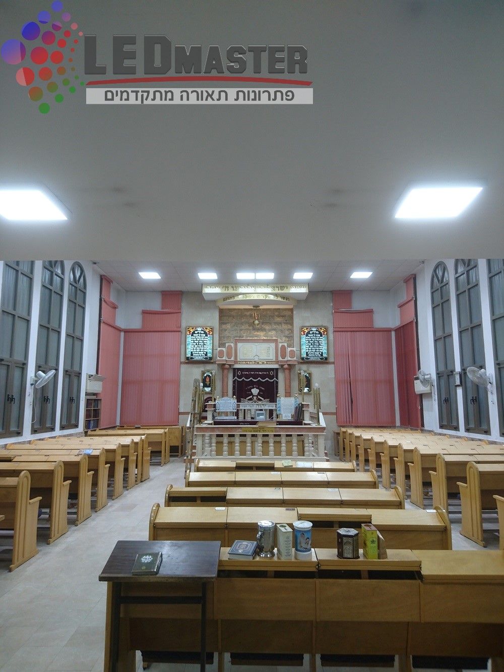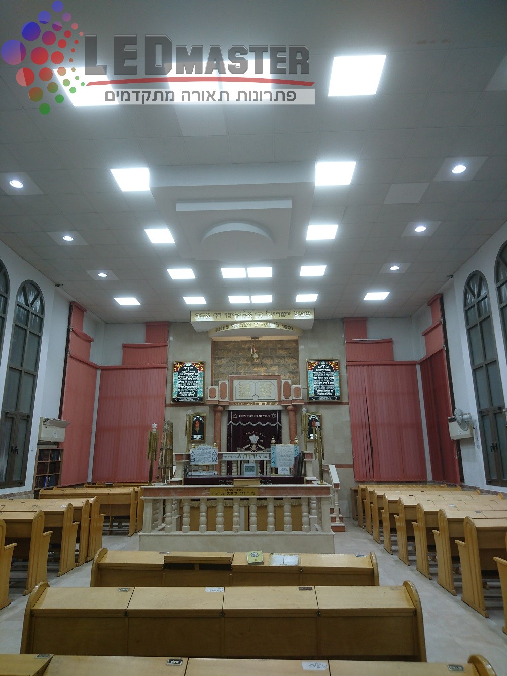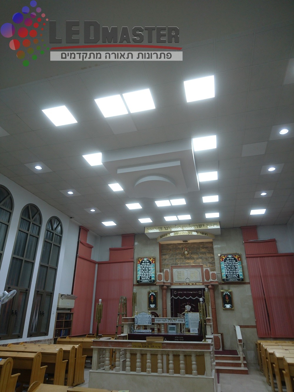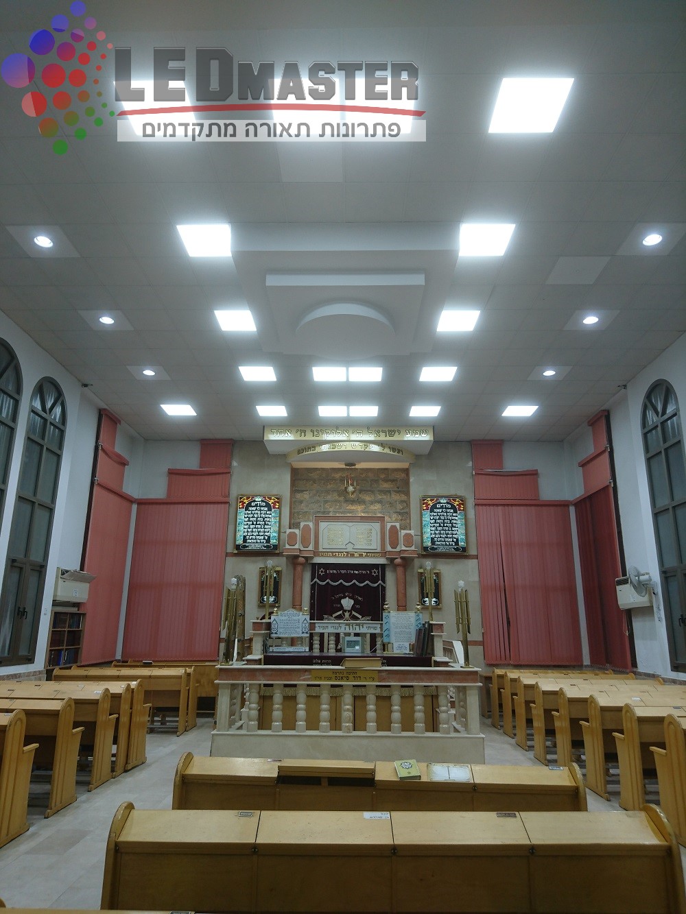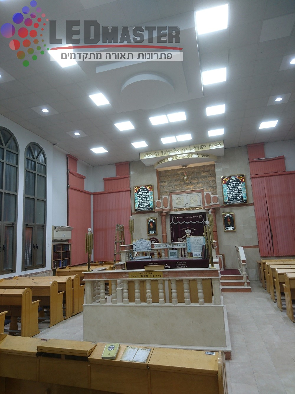 נברשות תאורה, נברשות בבית הכנסת, שנדליר לבית כנסת, גופי תאורה לבתי כנסת, תאורת קריסטל לבית כנסת, תאורת חלל גדול לבתי כנסת. לד מאסטר ביצעה מאות פרוייקטים בתאורת בתי כנסת החל משלב תכנון התאורה בתי כנסת, בחירת גופי תאורה לד לבתי כנסת. אנו פועלים בשיתוף פעולה צמוד עם מנהל פרוייקט התאורה מטעמה של בית הכנסת, בעיצוב והתאמת התאורה, פונקציונליות, ועמידה בדרישות התאורה בבתי הכנסת, תאורה תלויה לבית כנסת, גופי תאורה עם בקרת שמירת שבת ועוד.