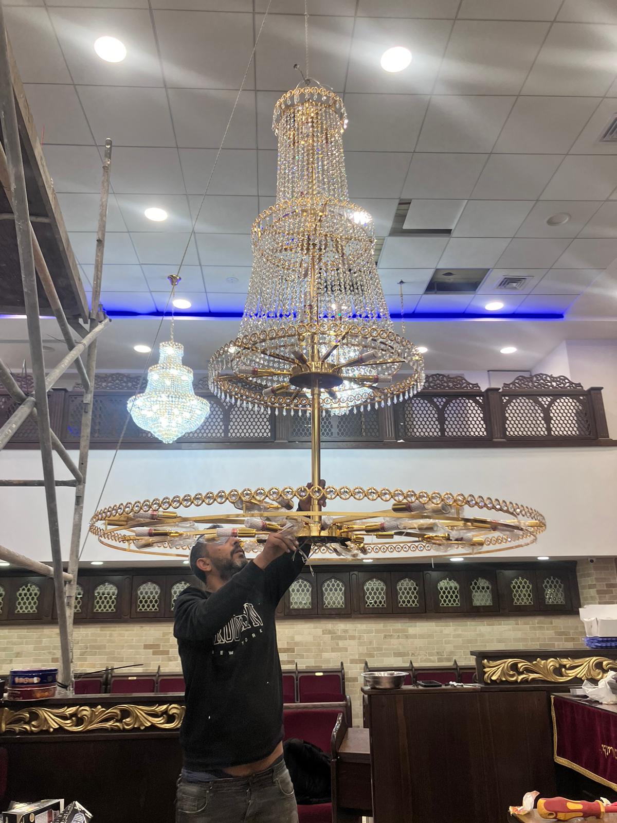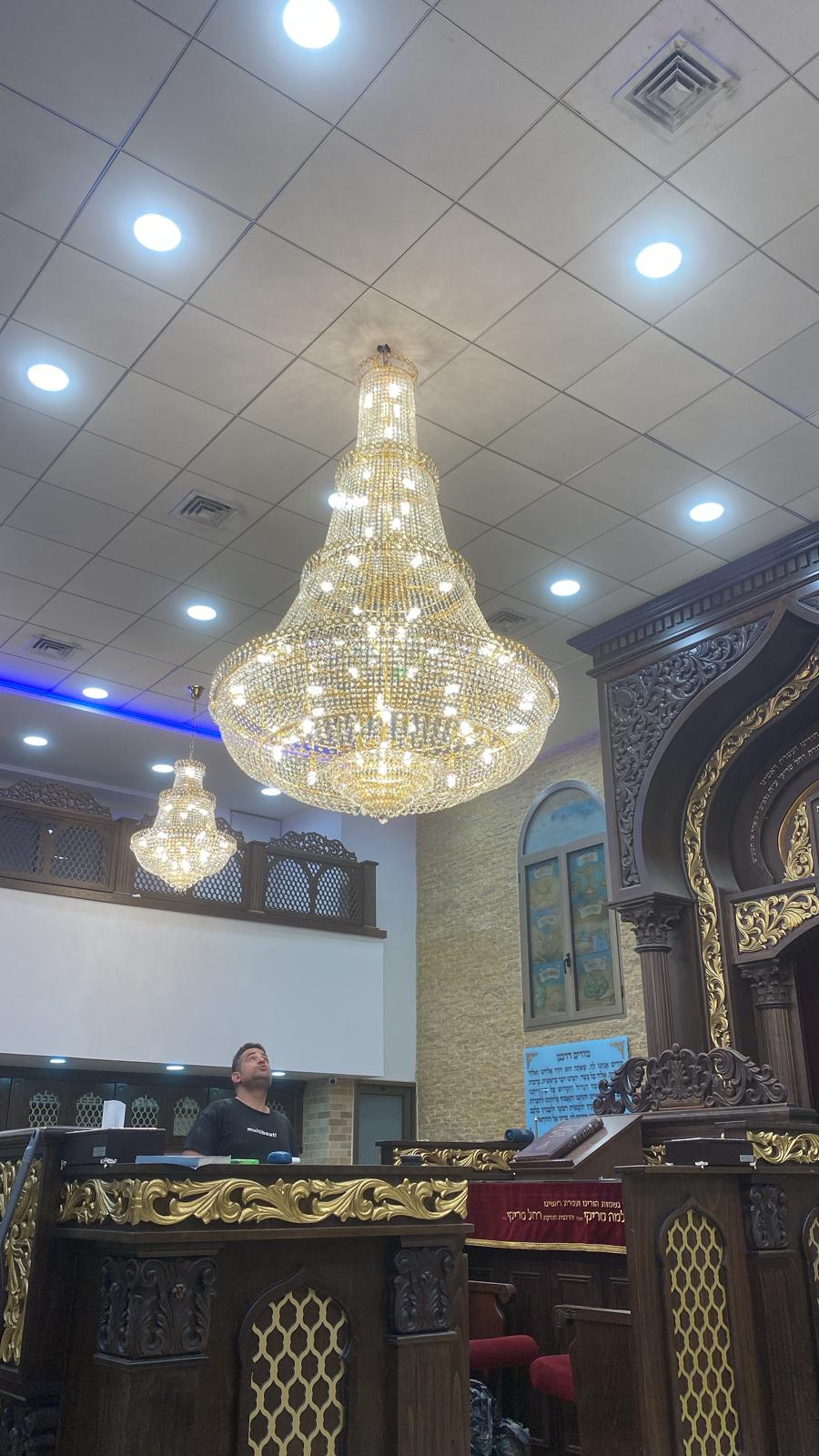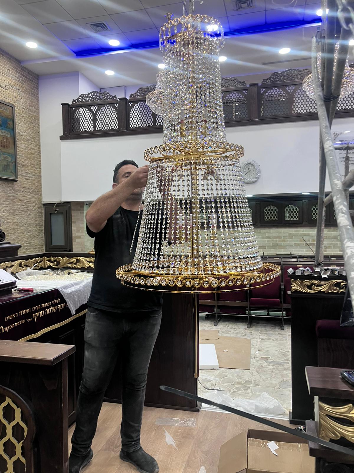 פרויקט בית הכנסת גאולת ישראל בחולון, ייצור בהתאה אישית והתקנה של שנדלירים יוקרתיים מקריסטל עם נורות חכמות משנות גוון.