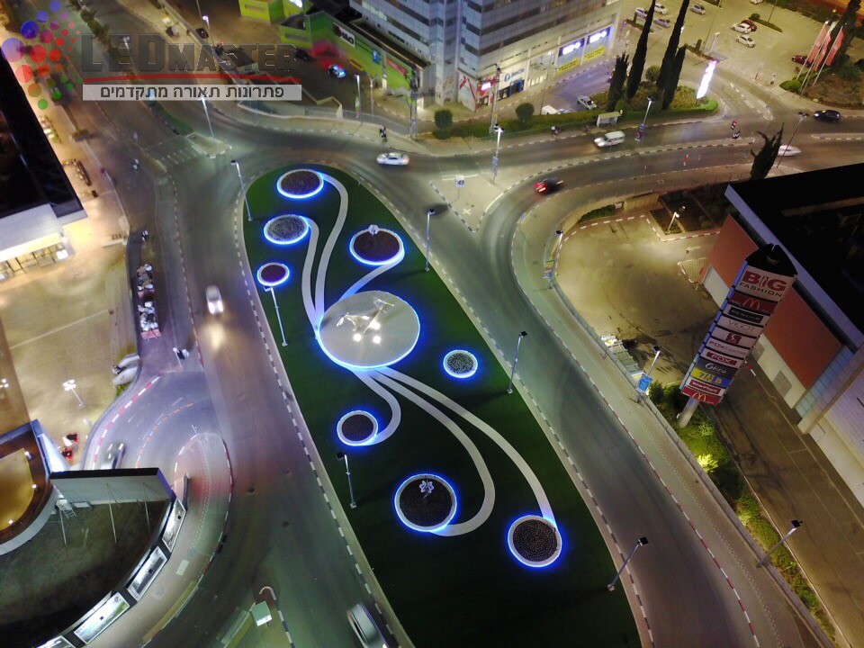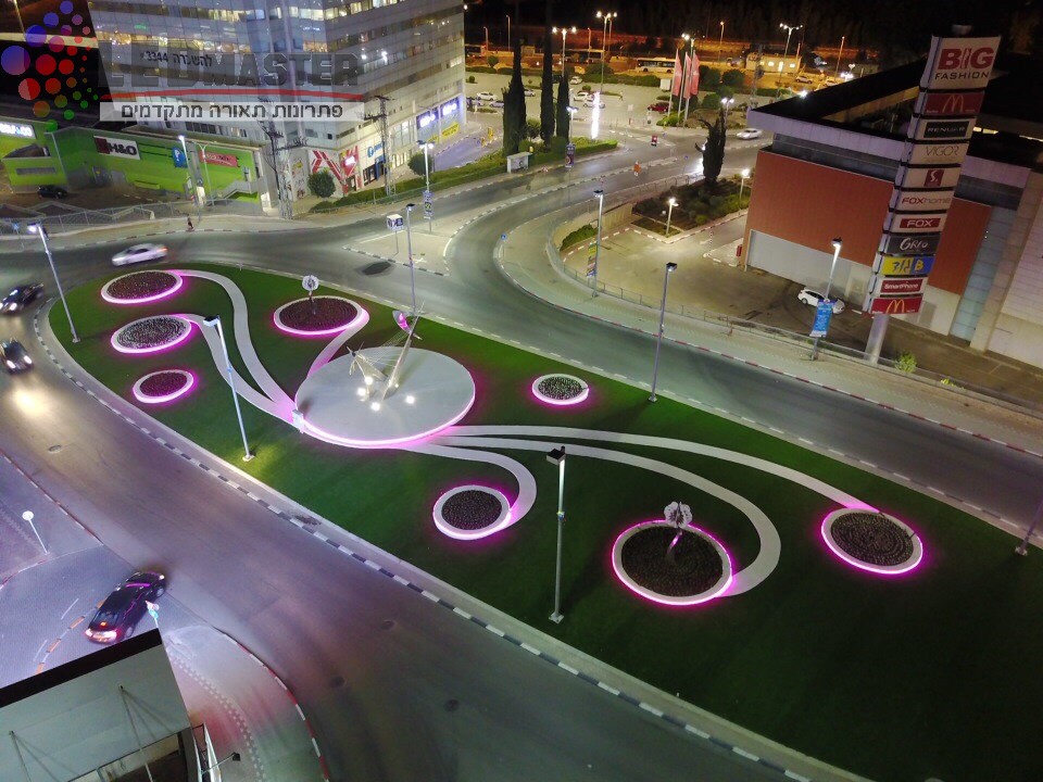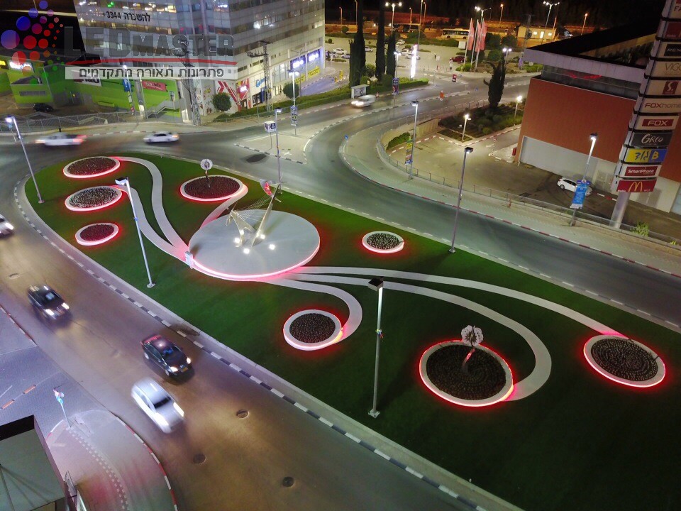 תאורה בכיכר, תאורת לד בכיכרות ציבוריות, תאורת אווירה בכיכרות ציבוריות, תאורת לד דקורטיבית בכיכר, תאורת לד בכיכר בעיר בית שמש להדגשת היופי האמיתי של הכיכר, תאורה המדגישה את הצמחייה ותאורה למזרקות המים ולהקנות לכיכר באמצעות התאורה מימד שונה להדגשת האלמנטים והחומרים בשעות הלילה. תאורה בכיכר יכולה להפוך כל כיכר במראה ססגוני ומרהיב אשר מושך את תשומת ליבם של העוברים והשבים גם מתוך המכונית.