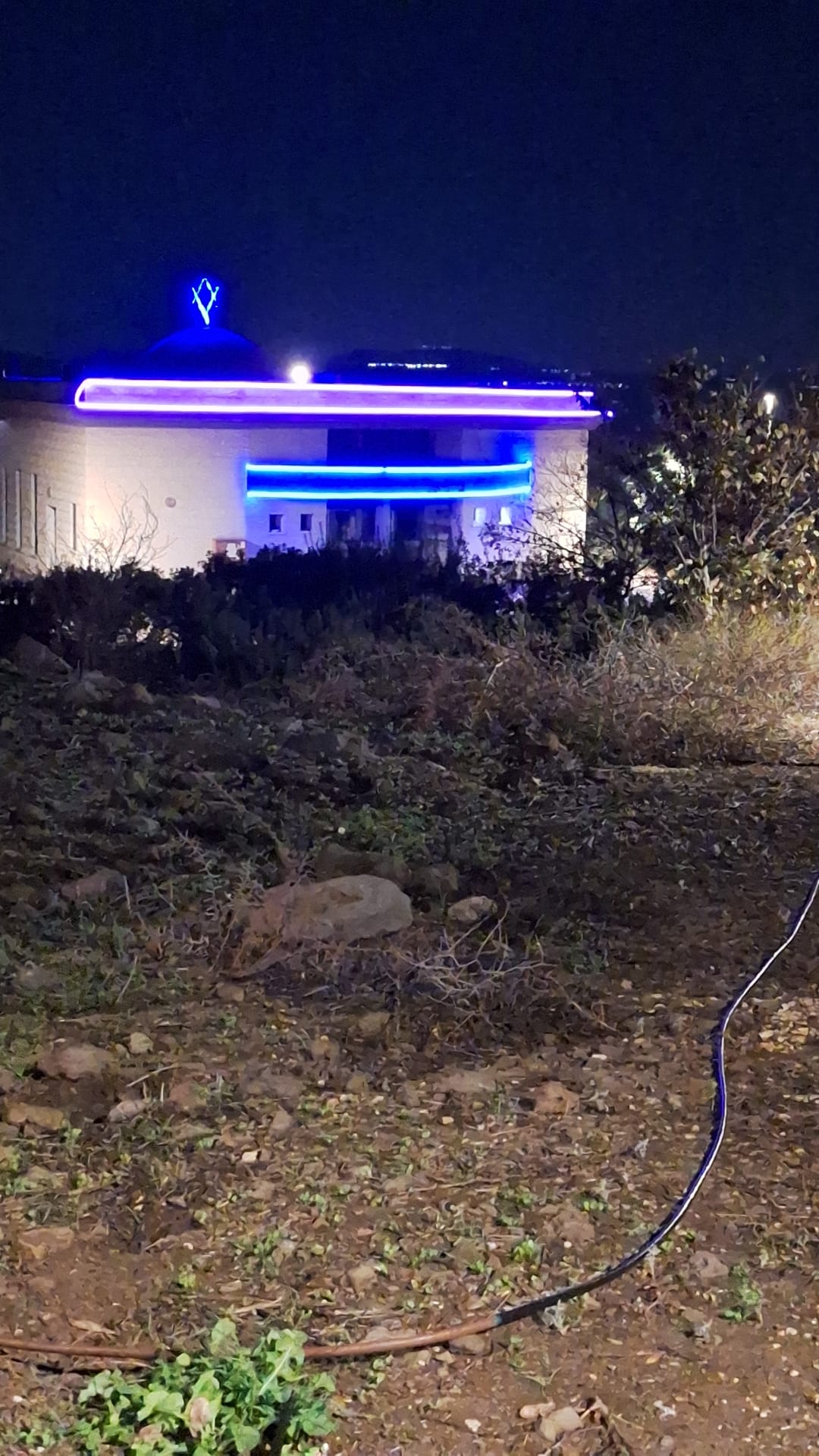 תאורת לד ניאון בבית כנסת המרכזי ביישוב קלע אלון, רמת הגולן